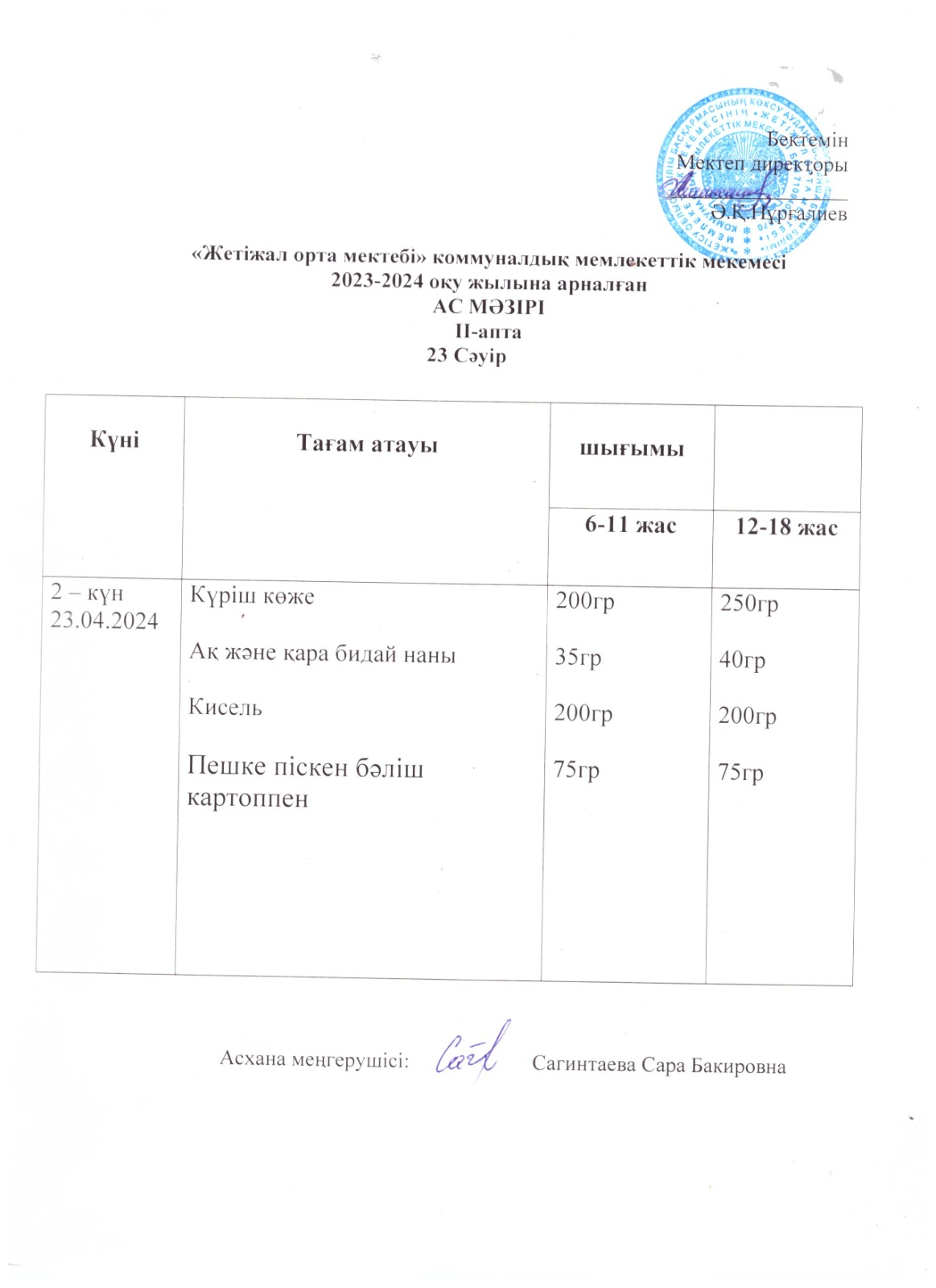 Ас мәзірі 23.04.2024ж » Көксу ауданы Жетіжал орта мектебі