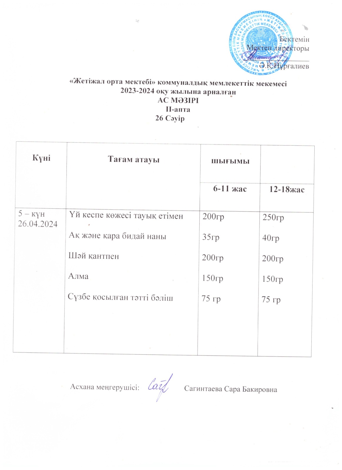 Ас мәзірі 26.04.2024ж » Көксу ауданы Жетіжал орта мектебі