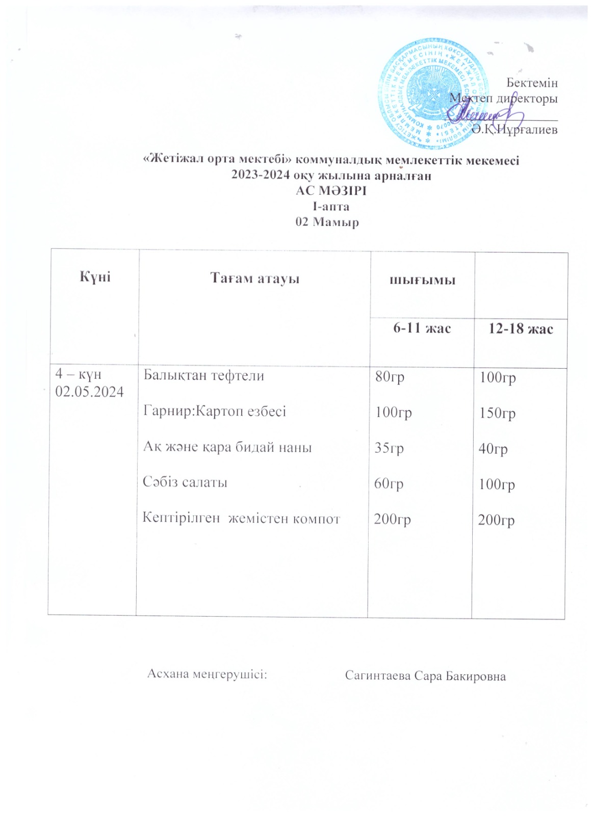 Ас мәзірі 02.05.2024ж » Көксу ауданы Жетіжал орта мектебі