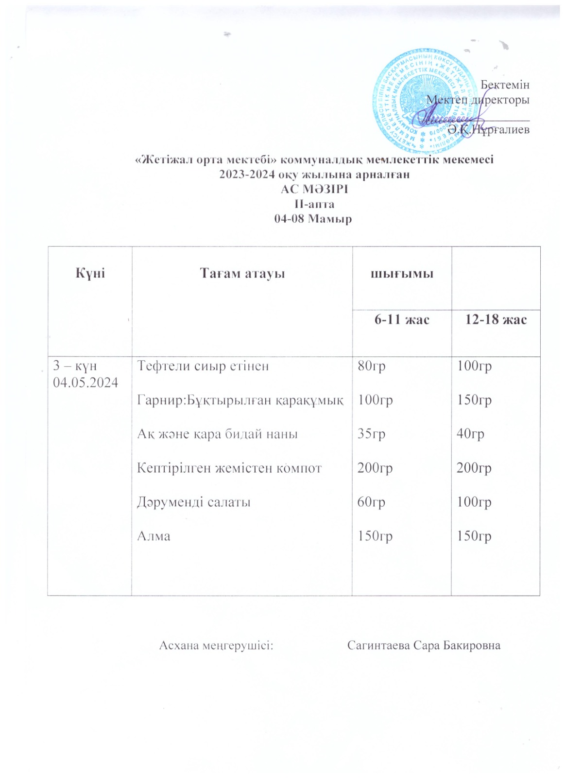 Ас мәзірі 04.05.2024ж » Көксу ауданы Жетіжал орта мектебі
