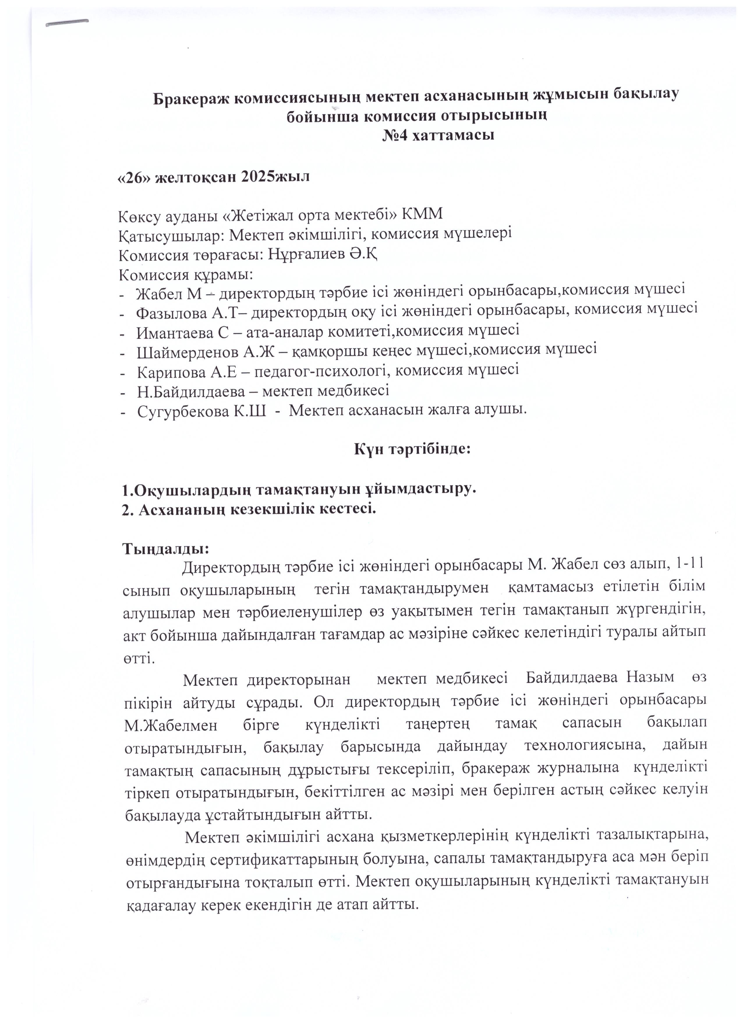 Тамақтану хаттамасы №4 (желтоқсан айы) » Көксу ауданы Жетіжал орта мектебі