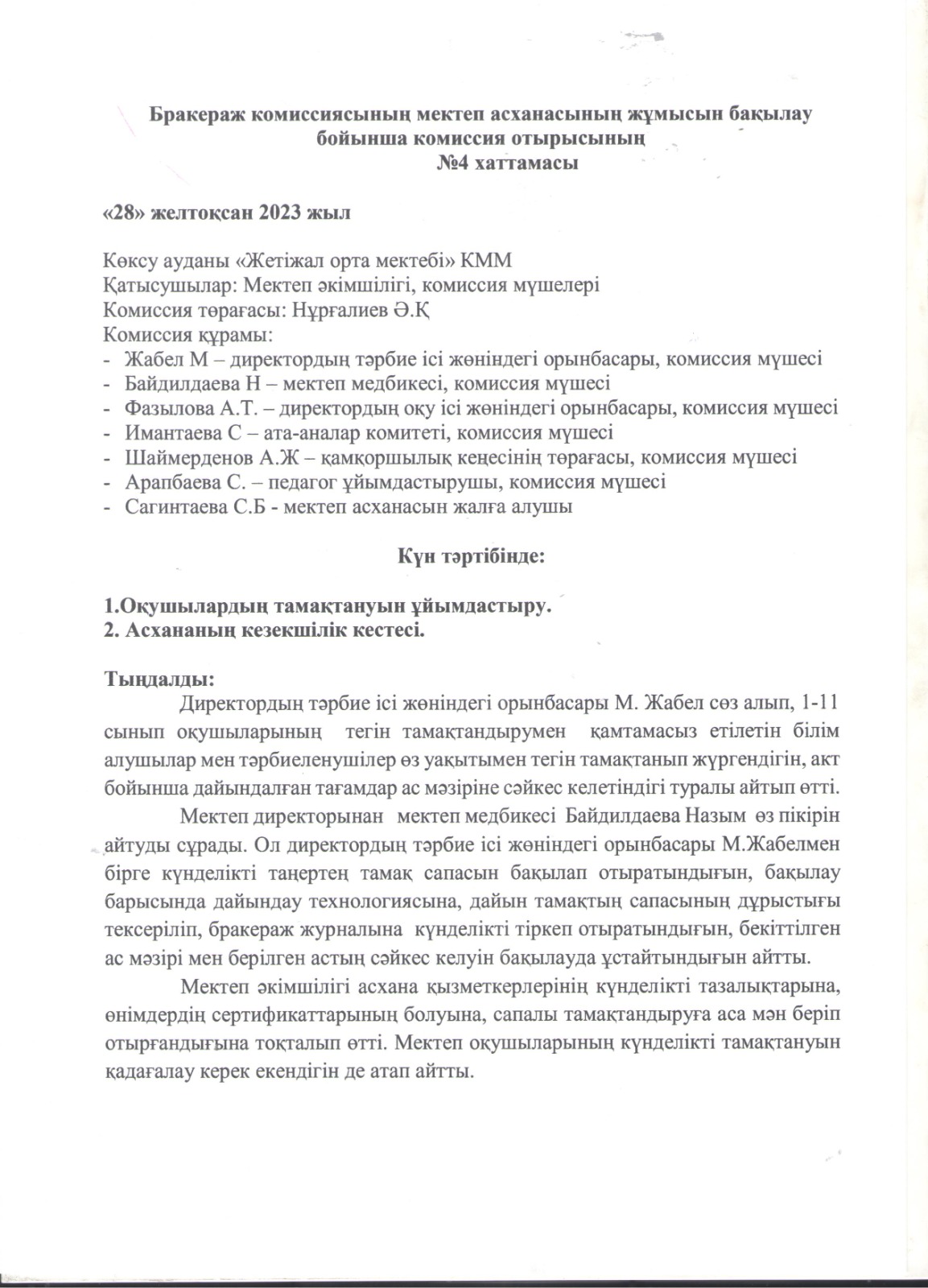 Тамақтану хаттамасы №4 ( желтоқсан айы) » Көксу ауданы Жетіжал орта мектебі