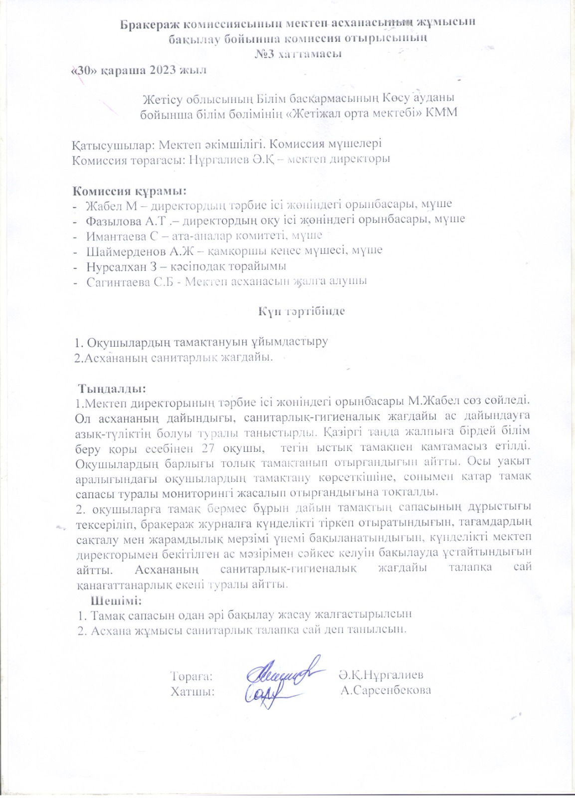 Тамақтану хаттамасы №3 (қараша айы) » Көксу ауданы Жетіжал орта мектебі