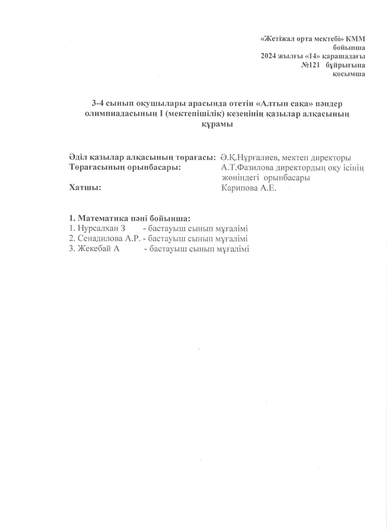 Алтын сақа олимпиадасы бұйрық » Көксу ауданы Жетіжал орта мектебі