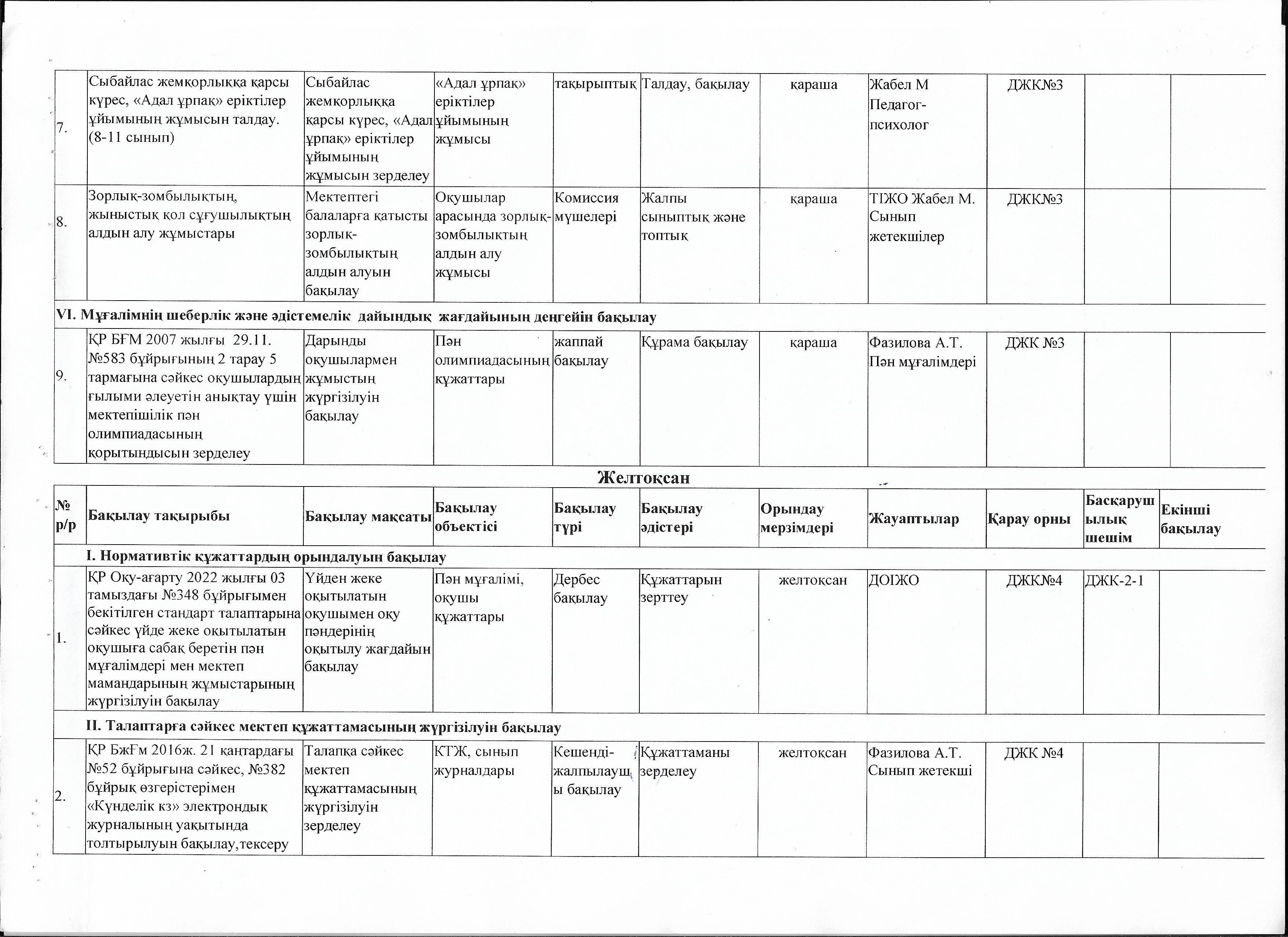 Мектепішілік бақылау 2022-2023 оқу жылы » Көксу ауданы Жетіжал орта мектебі