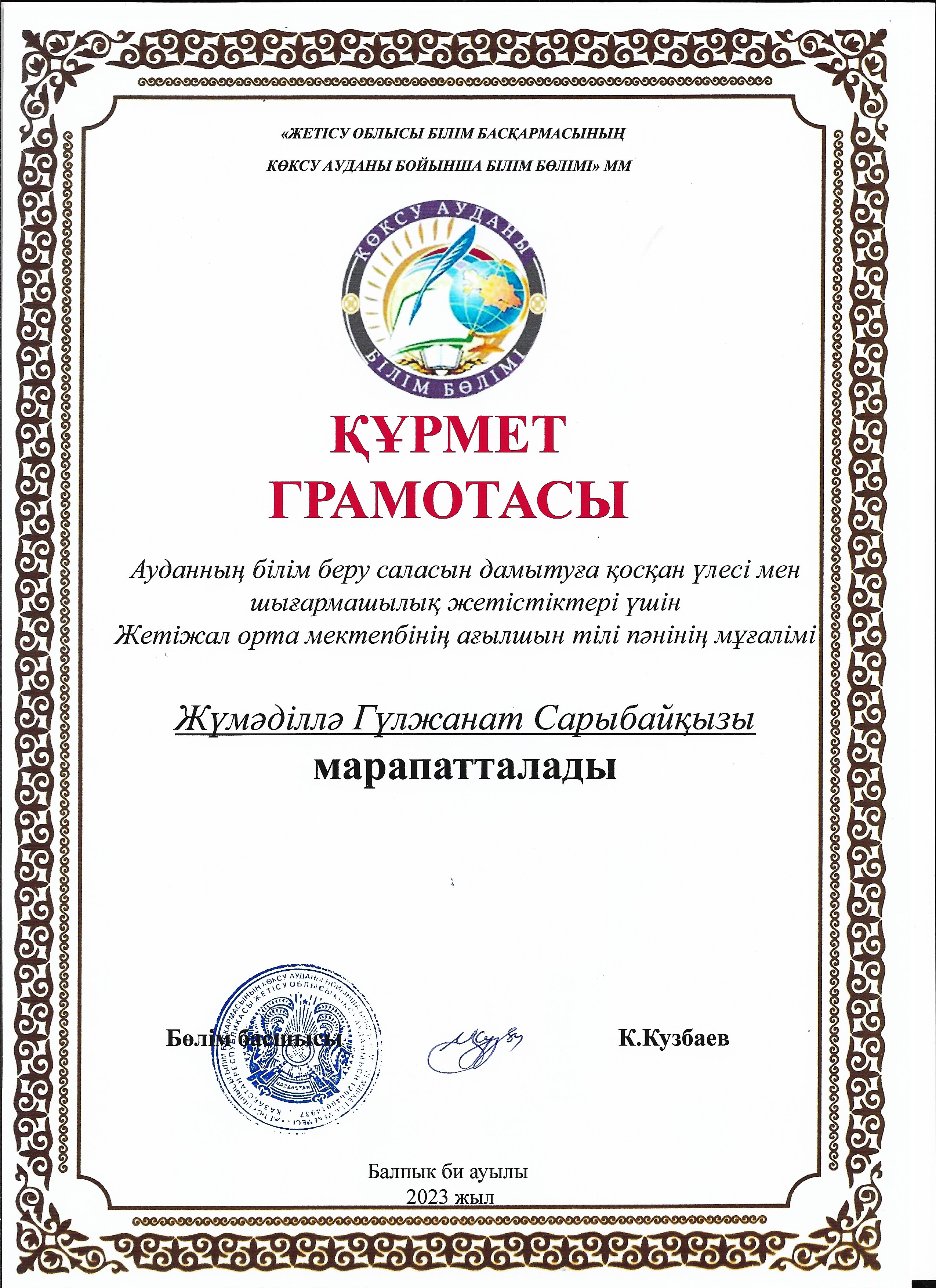 Мектебіміздің жас ұстаздары құрметке ие болды!!! » Көксу ауданы Жетіжал орта мектебі