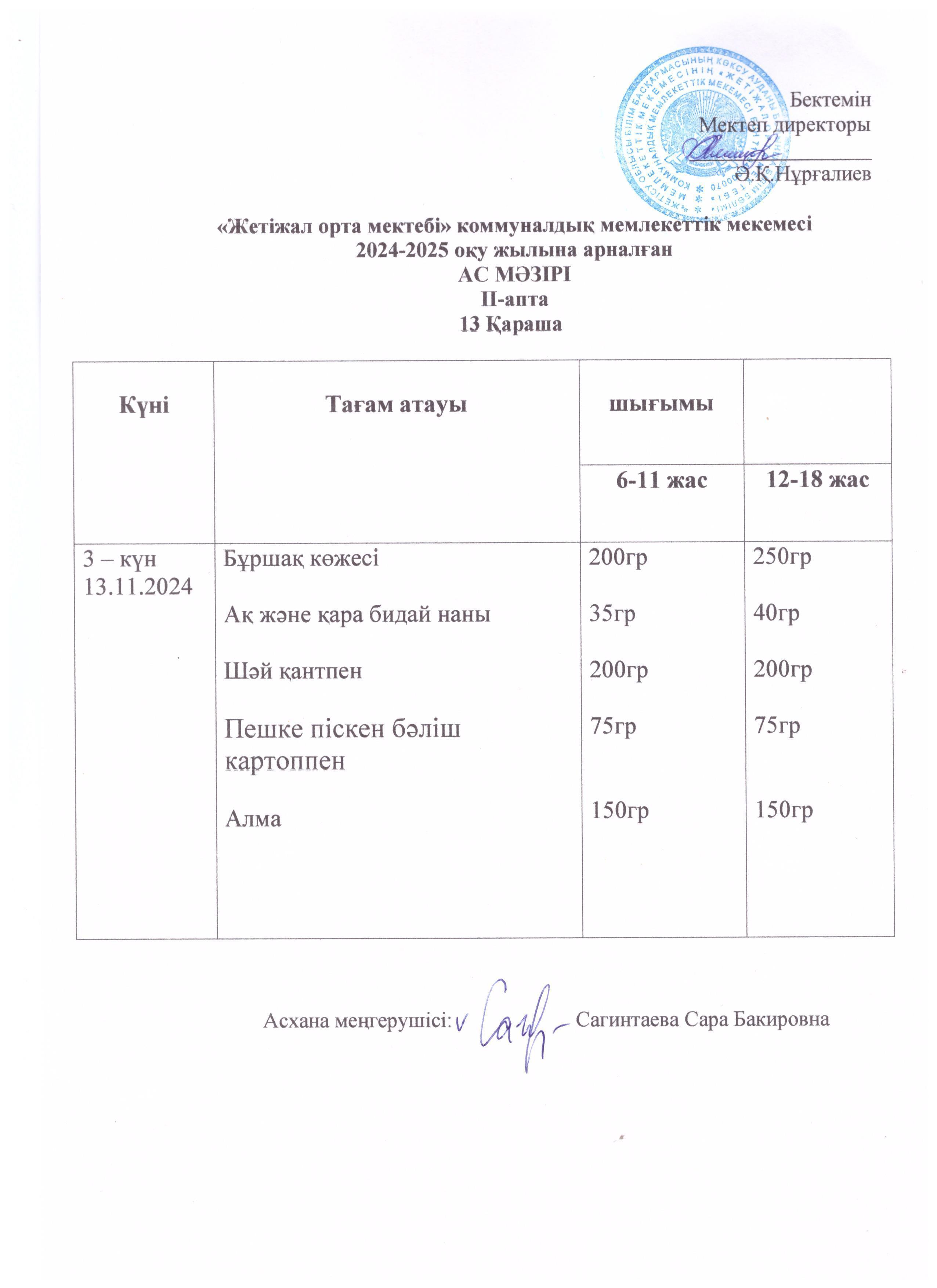 Ас мәзірі 13.11.2024ж » Көксу ауданы Жетіжал орта мектебі