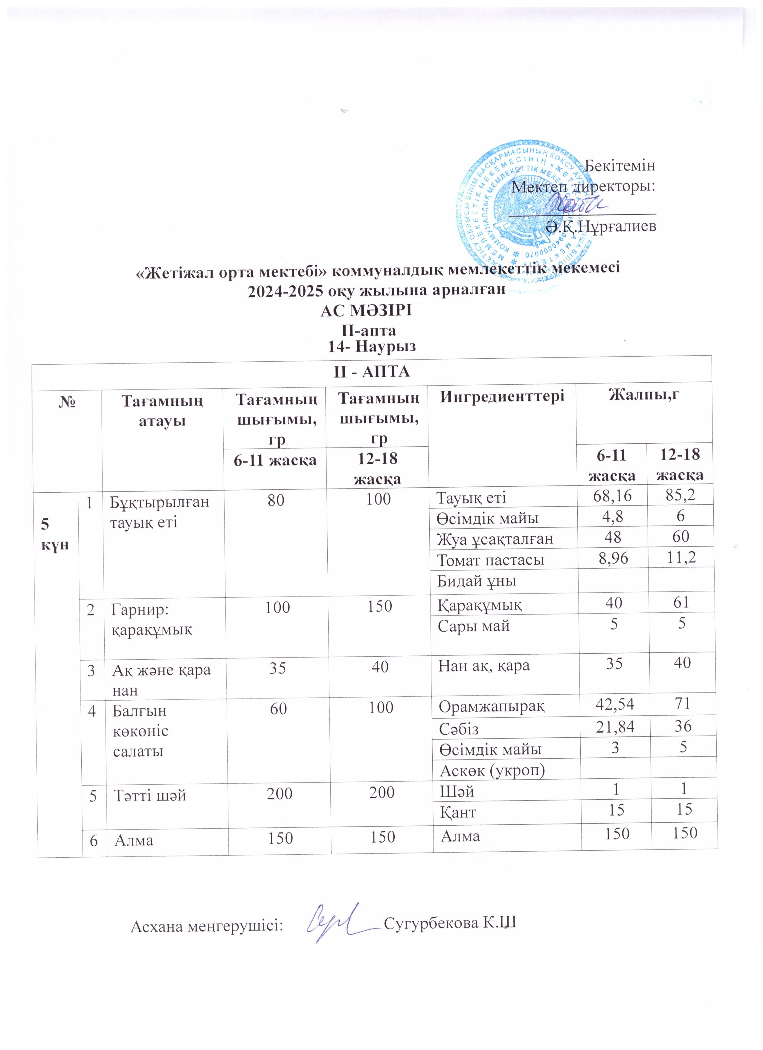 Ас мәзірі 14.03.2025ж » Көксу ауданы Жетіжал орта мектебі