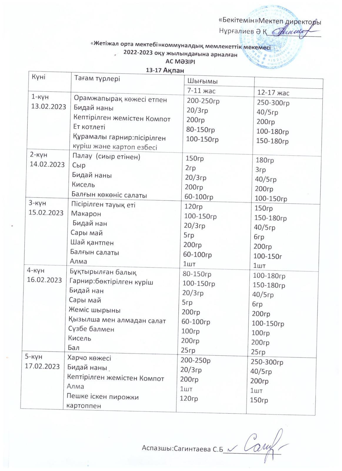 13-17 ақпан арылығы "Ас мәзірі" » Көксу ауданы Жетіжал орта мектебі