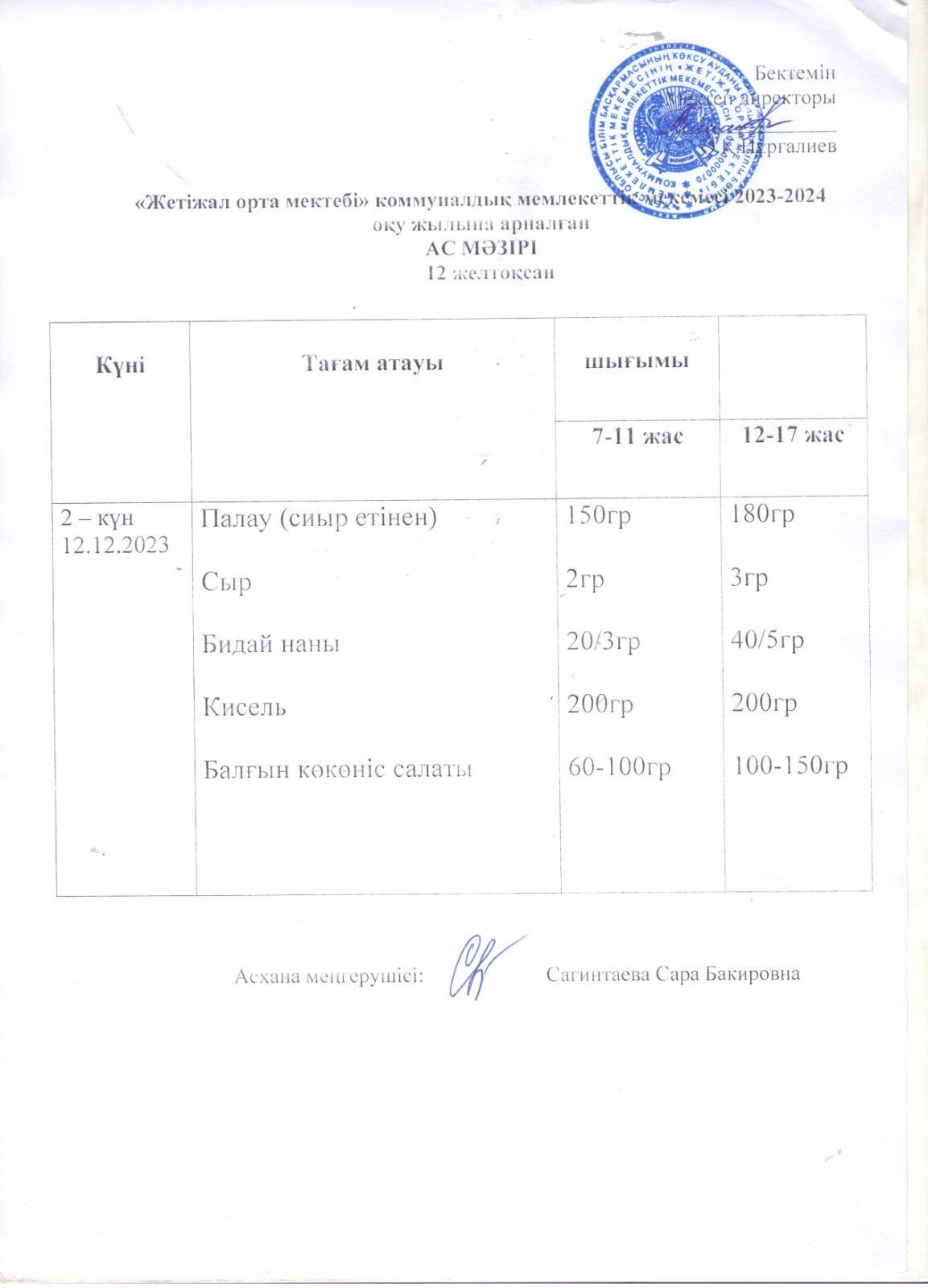 Ас мәзірі 12.12.2023ж. » Көксу ауданы Жетіжал орта мектебі